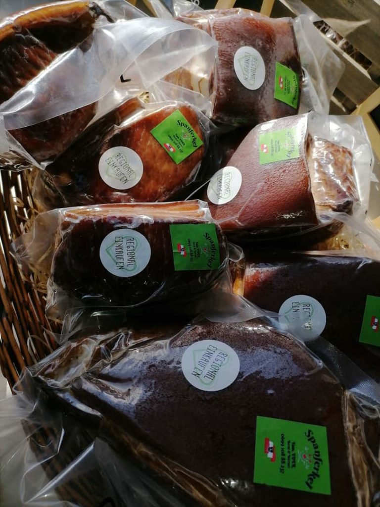 Unsere Köstlichkeiten vom Schwein werden zu 100% regional hergestellt. Da alle Produktionsschritte am Hof stattfinden, gibt es keine unnötigen Transportwege.